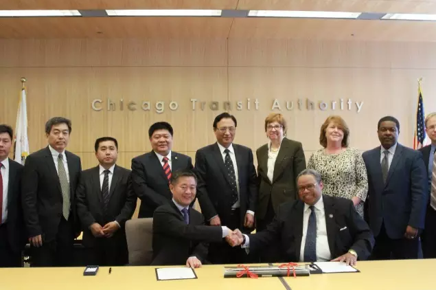 美國當(dāng)?shù)貢r(shí)間2016年4月15日,中國中車與芝加哥交通管理局(CTA)在美國芝加哥就856輛地鐵車輛項(xiàng)目舉行了簽約儀式。中國中車集團(tuán)公司、股份公司董事長崔殿國與中國中車股份公司副總裁余衛(wèi)平見證了簽約儀式。具體負(fù)責(zé)該項(xiàng)目的中國中車四方股份公司總經(jīng)理馬云雙與芝加哥交通管理局總裁卡特在項(xiàng)目上簽字。美國當(dāng)?shù)貢r(shí)間2016年4月15日,中國中車與芝加哥交通管理局(CTA)在美國芝加哥就856輛地鐵車輛項(xiàng)目舉行了簽約儀式。中國中車集團(tuán)公司、股份公司董事長崔殿國與中國中車股份公司副總裁余衛(wèi)平見證了簽約儀式。具體負(fù)責(zé)該項(xiàng)目的中國中車四方股份公司總經(jīng)理馬云雙與芝加哥交通管理局總裁卡特在項(xiàng)目上簽字。